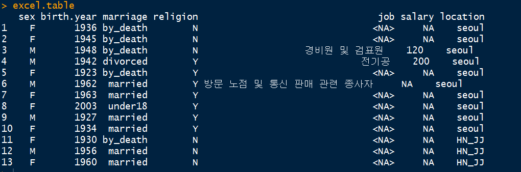 테이블 형식으로 정확하게 데이터를 긁어오는 것을 알 수 있다